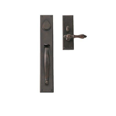 #EN-1802-H6-RH-2 1/2"-1 3/4"-BP Backset: 2.5", Handing: Right Handing Features: -Door handle.-Fits 1.75" door width. Color/Finish: -Bronze patina living finish. Dimensions: -Overall dimensions: 11'' H x 2.5'' W x 2.38'' D. Collection: -Entry Set collection.