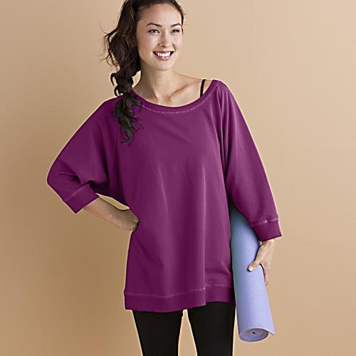 Comfortable Yoga Cover Up Shirt is soft and roomy, our French terry Top Studio garment perfect complexion for the rich, while the color. It does double duty as a great cover-up after yoga or just relaxing on Saturdays.Features contrast stitching and rib details at the neck, sleeves and hem. 94% cotton, 6% elastane. Machine washable. Hits below the hip, measures 30 "from neck to hem Made in functions USA.Sweatshirt: Spacious, comfortable sponge fitFrench bio and spandexG cotton.